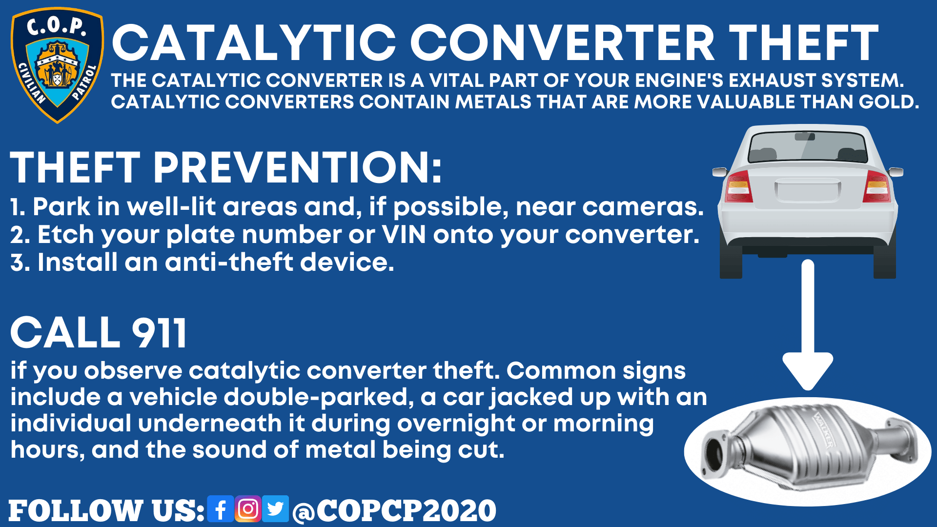 Catalytic Converters contain precious metals that can add up for a thief willing to spend a few hours a night cutting the parts from exhaust systems beneath vehicles. Around our